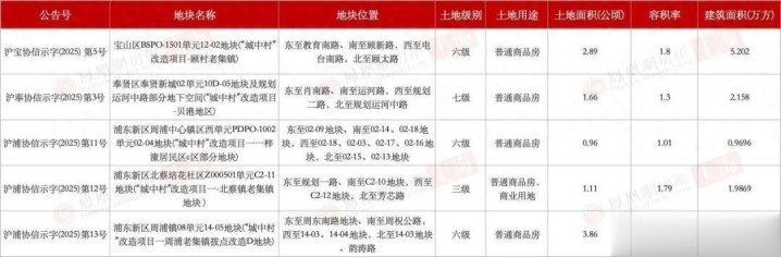 近日,上海市规划和自然资源局发布5宗土地协议出让公示,分别位于宝山区、奉贤区及浦东新区。5宗地块均为“城中村”改造项目,总土地面积约10.48公顷,总建筑面积约18万平方米。